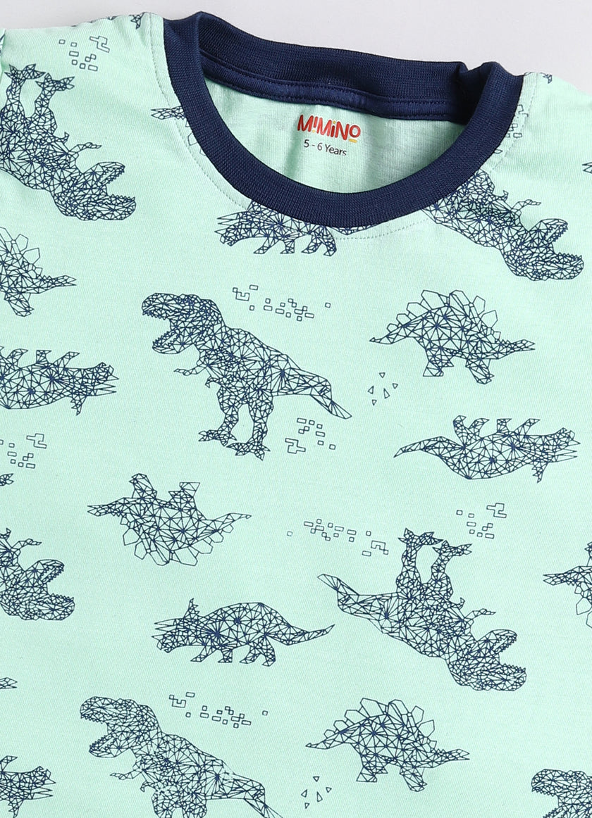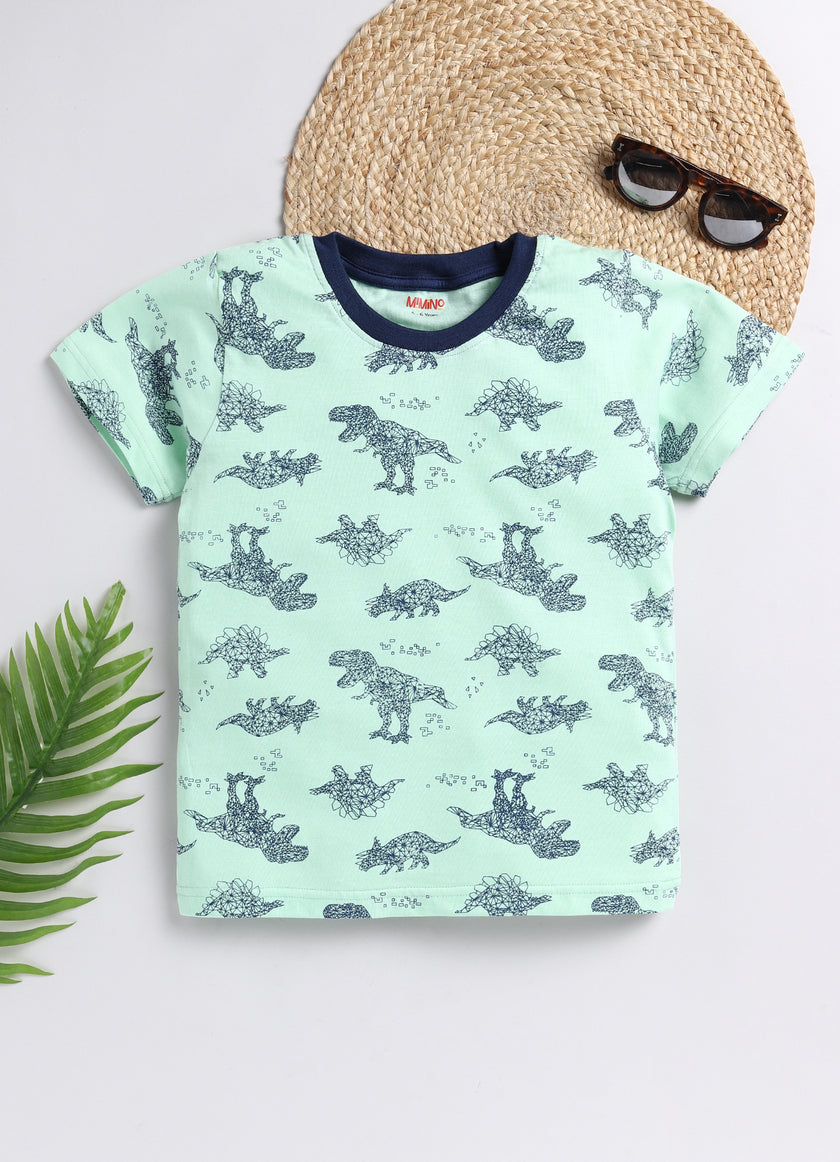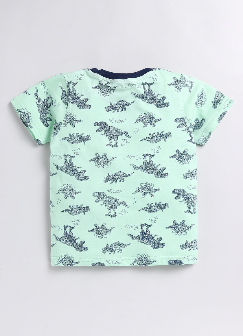 Boys Cotton Made Half Sleeve Dino Theme Green Round Neck T-Shirt