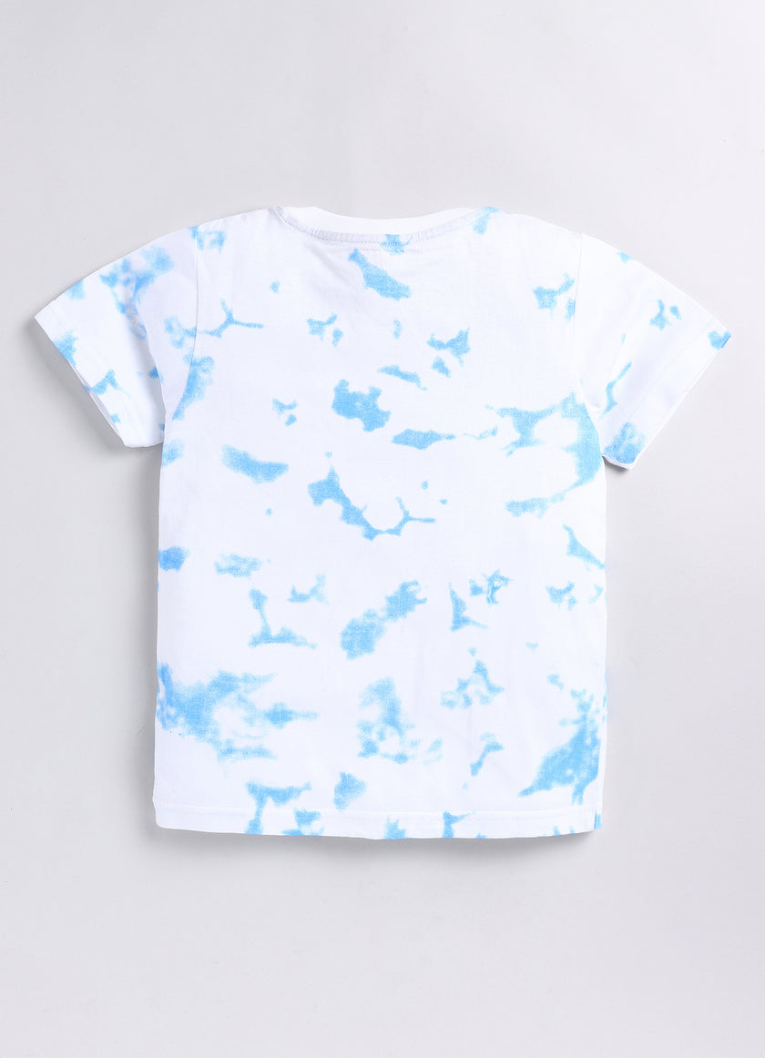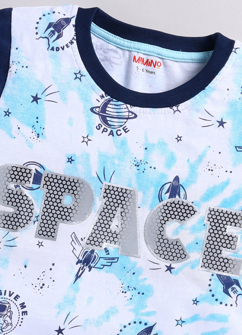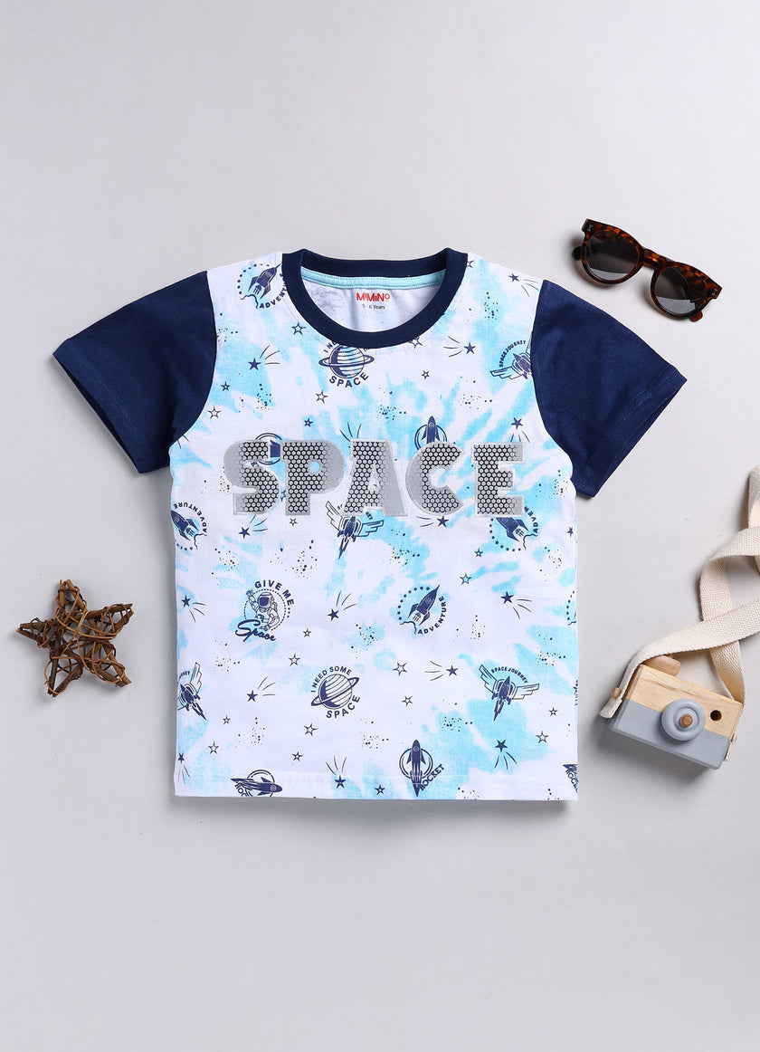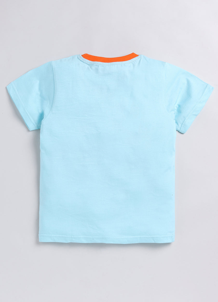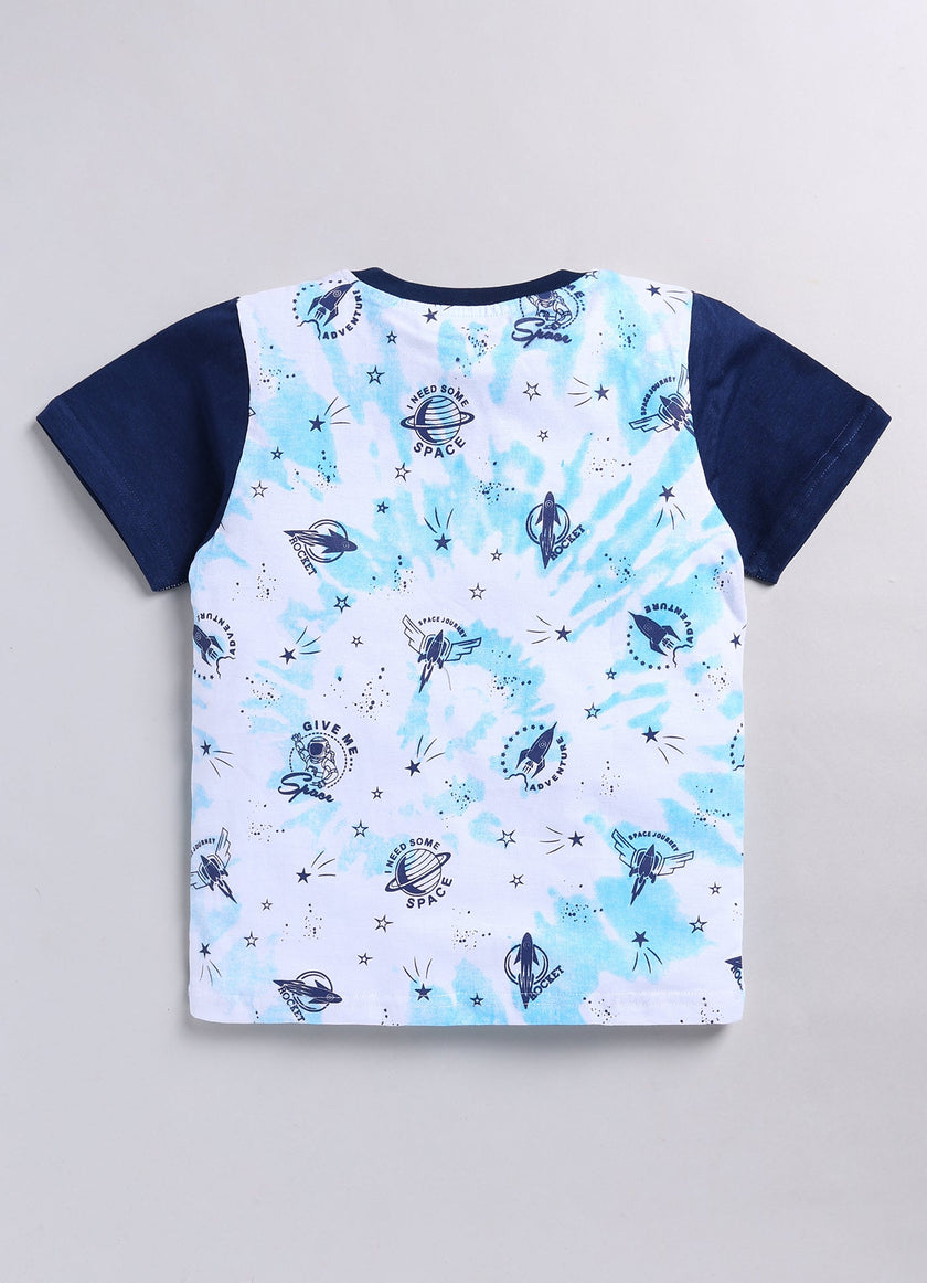 Boys Cotton Made Half Sleeve Space Theme Aqua Blue Round Neck T-Shirt
