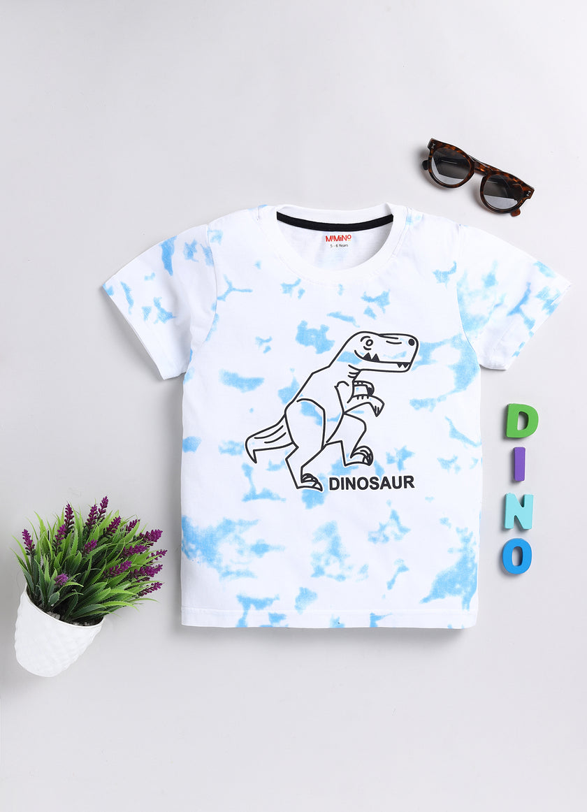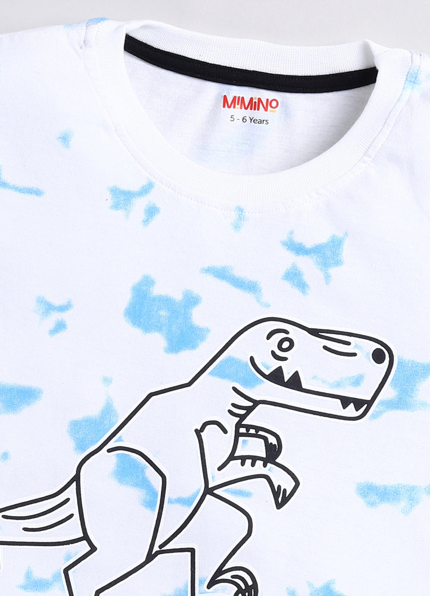 Boys Cotton Made Half Sleeve Dino Theme White Round Neck T-Shirt