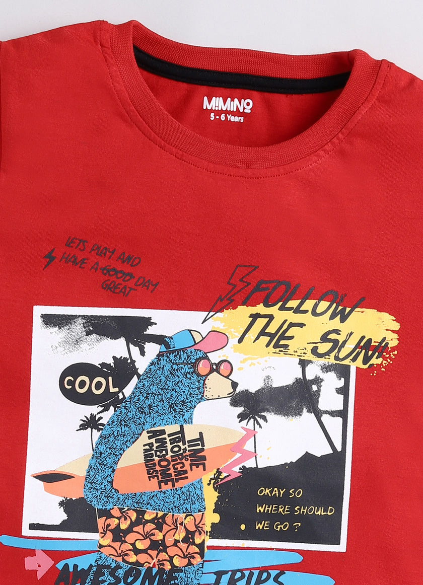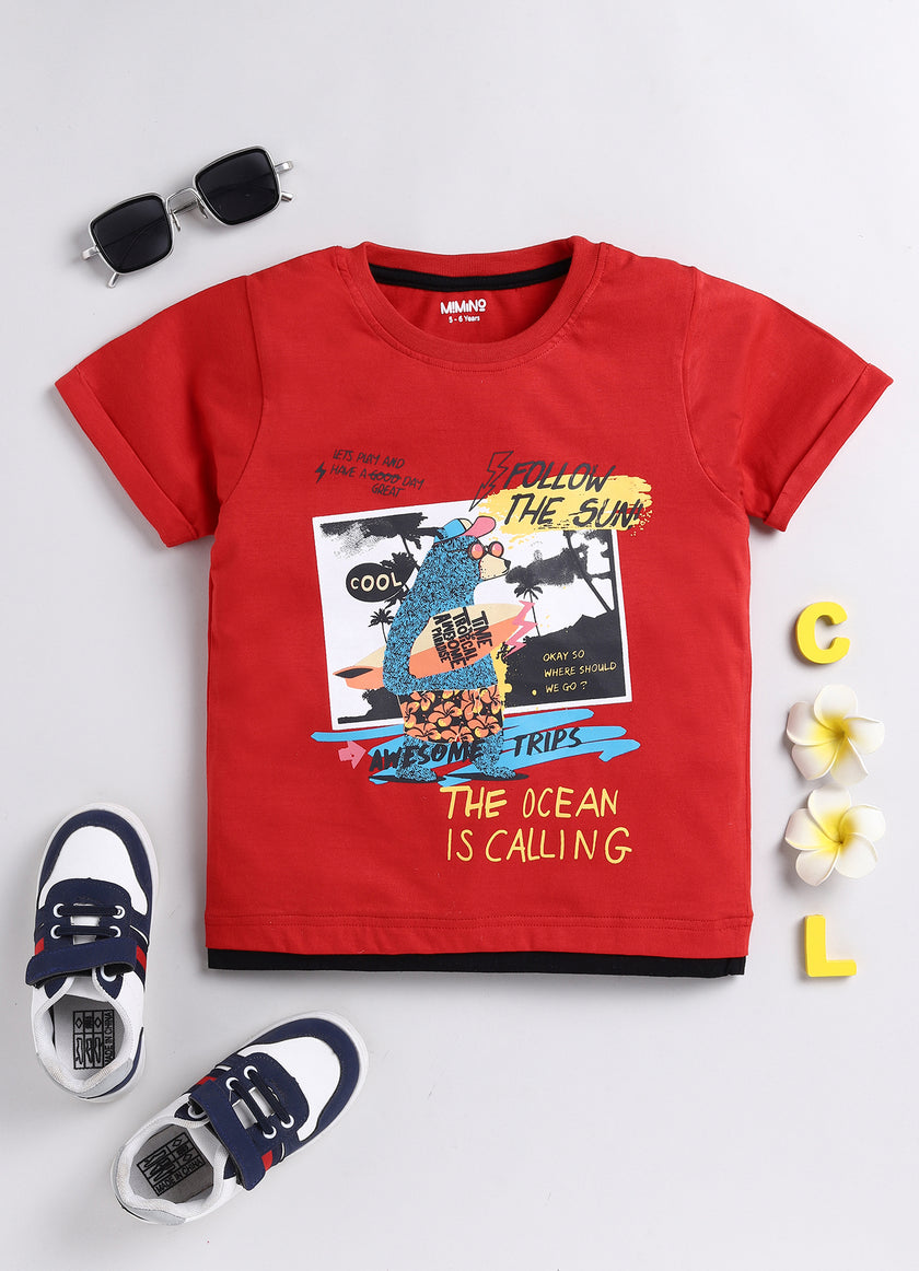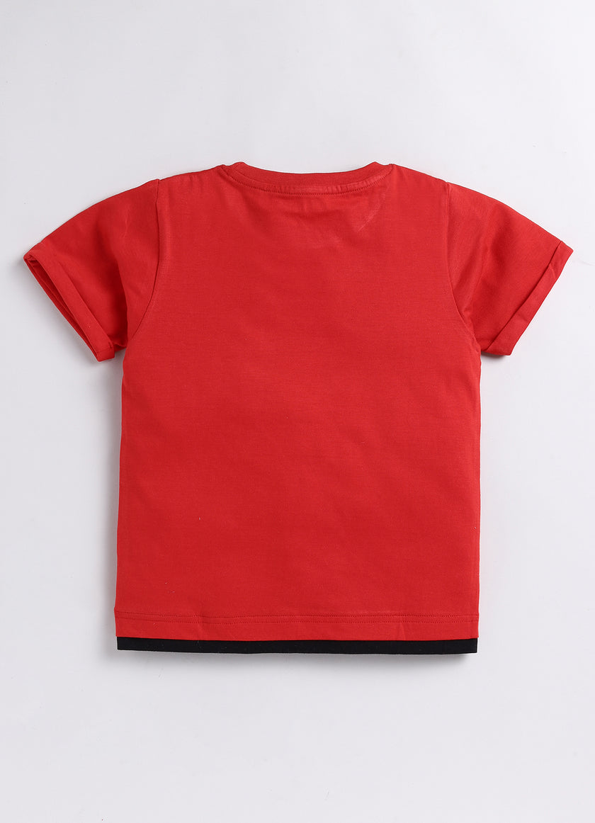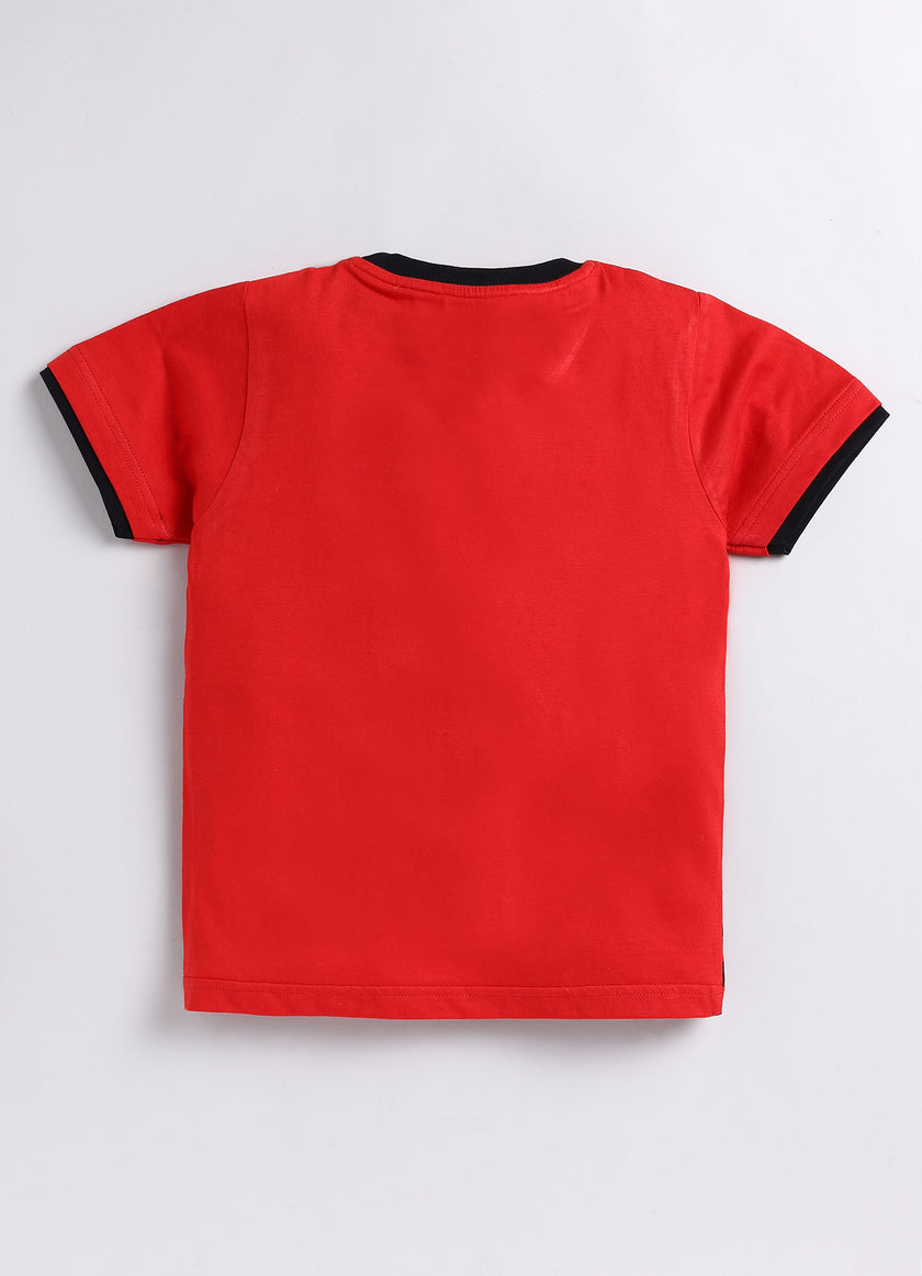 Boys Cotton Made Half Sleeve Holiday Theme Red Round Neck T-Shirt