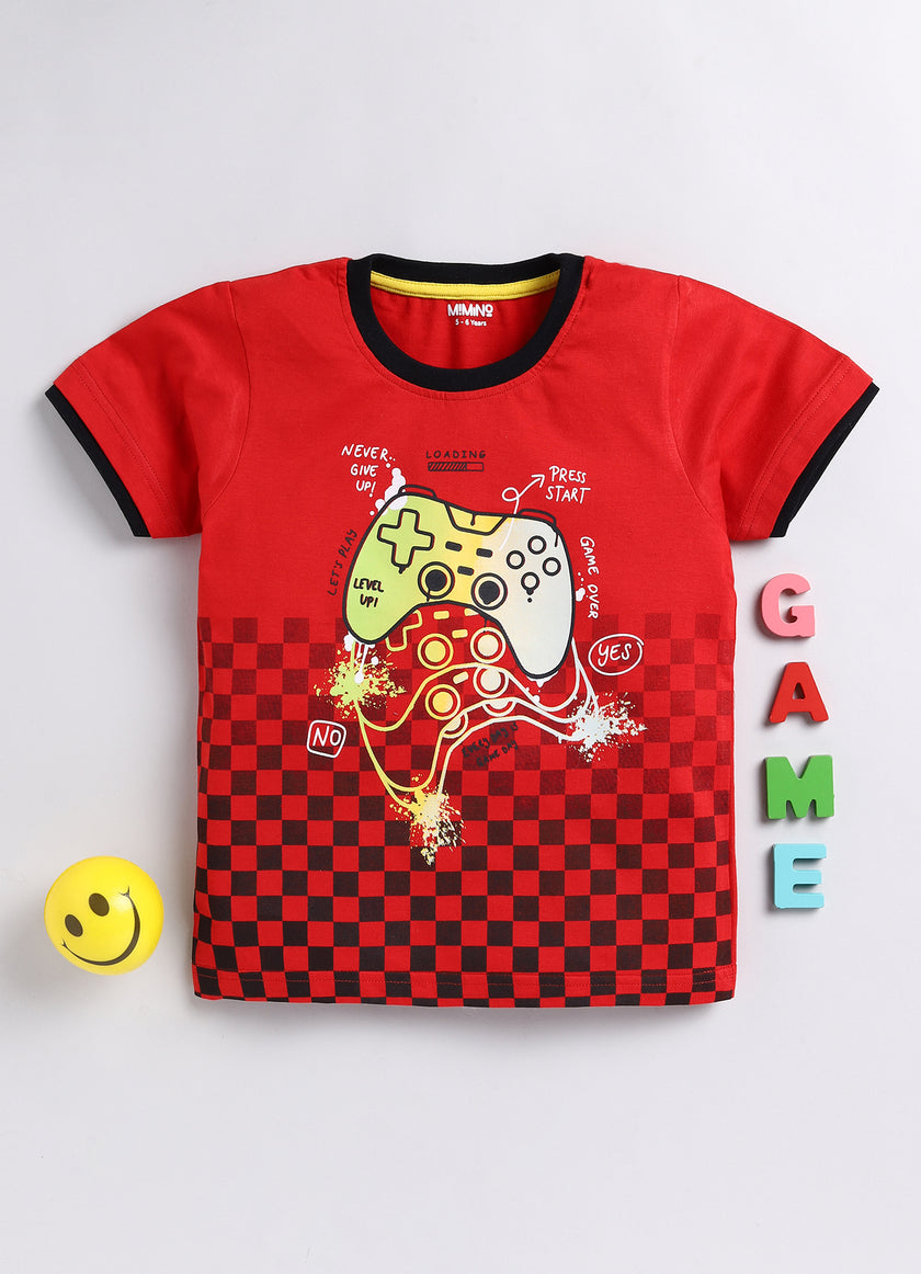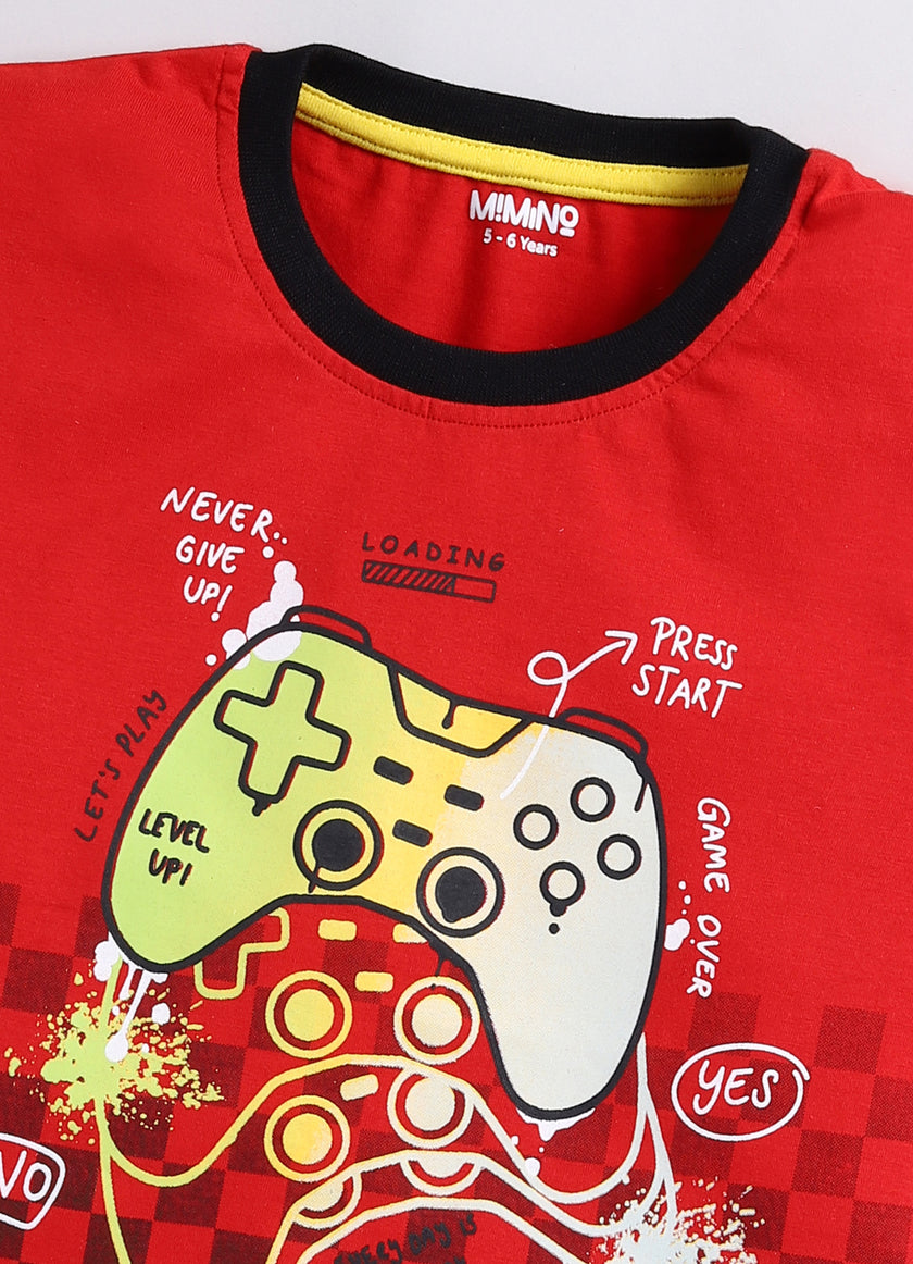 Boys Cotton Made Half Sleeve Video Game Theme Red Round Neck T-Shirt