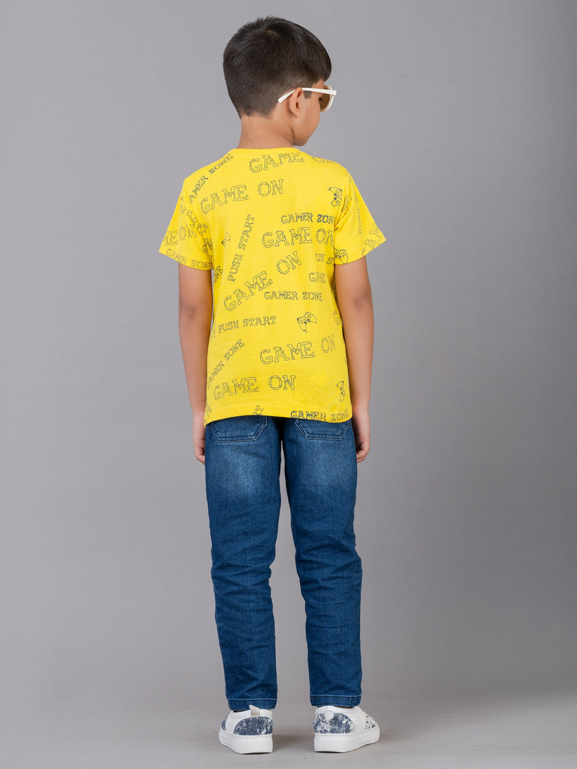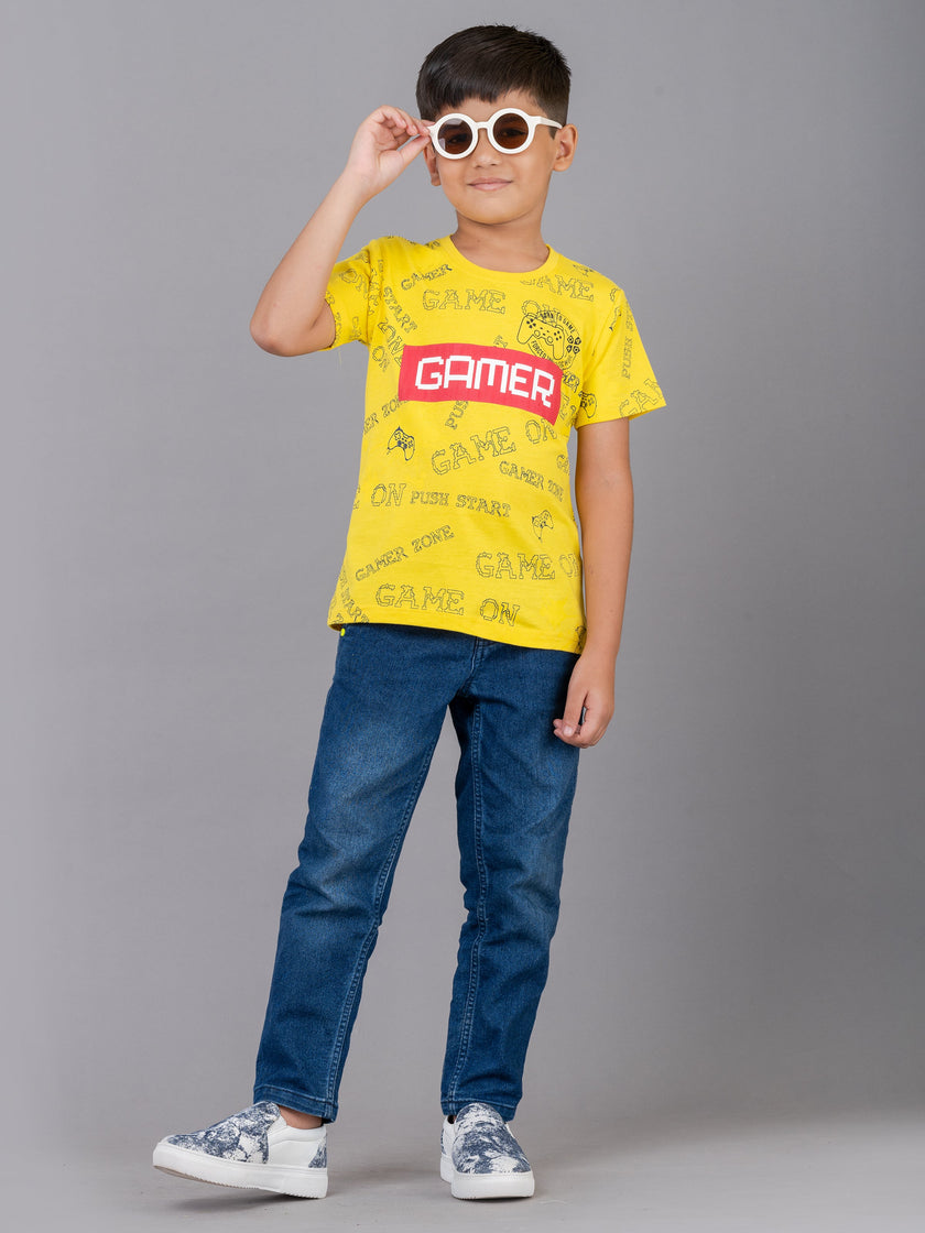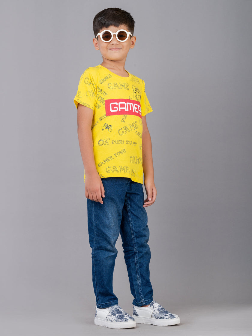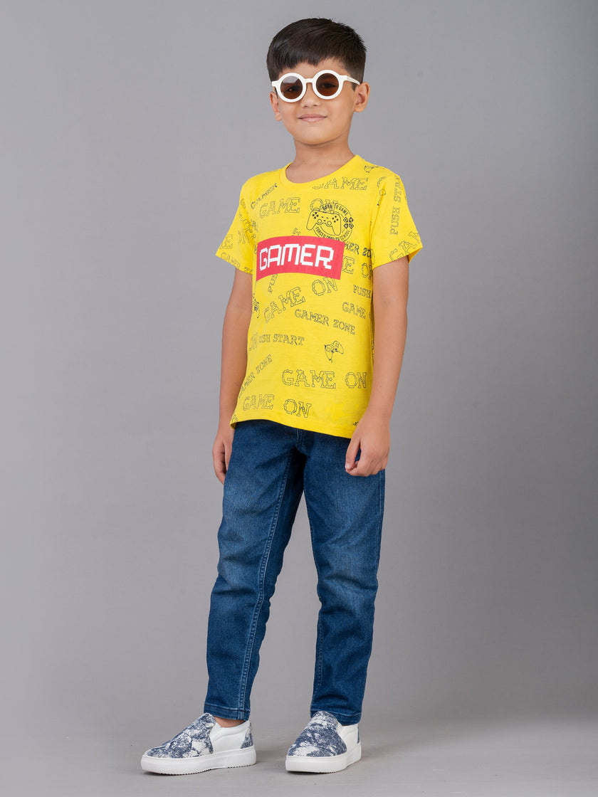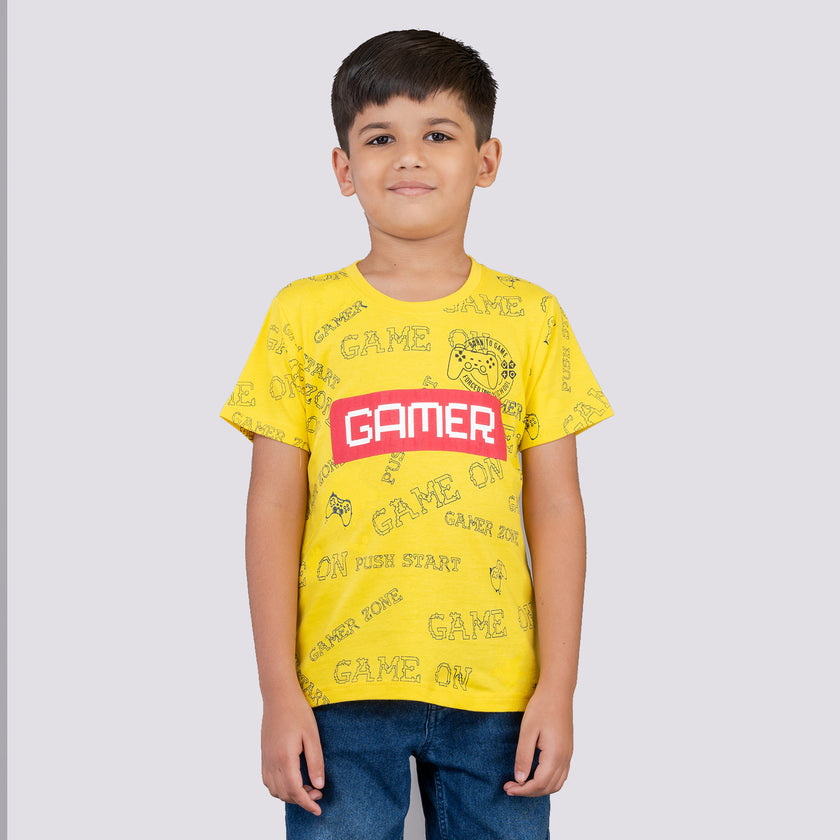 Boys Cotton Made Half Sleeve Game Theme Yellow Round Neck T-Shirt