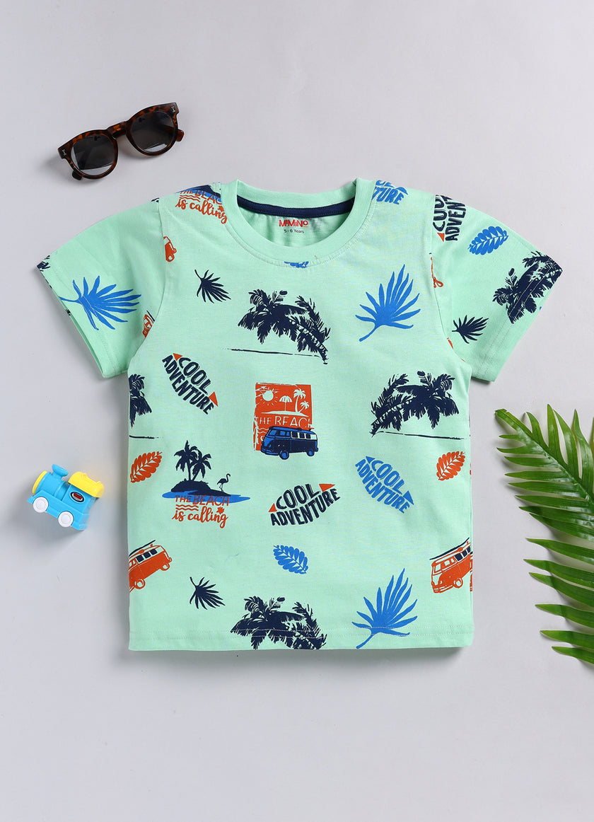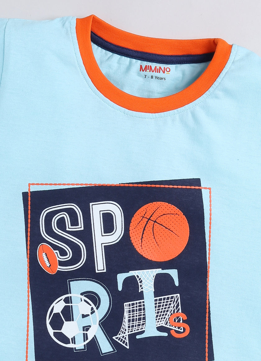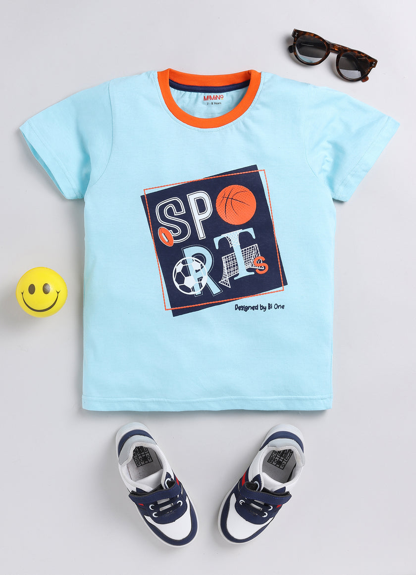 Boys Cotton Made Half Sleeve Sports Theme Mint Color Round Neck T-Shirt