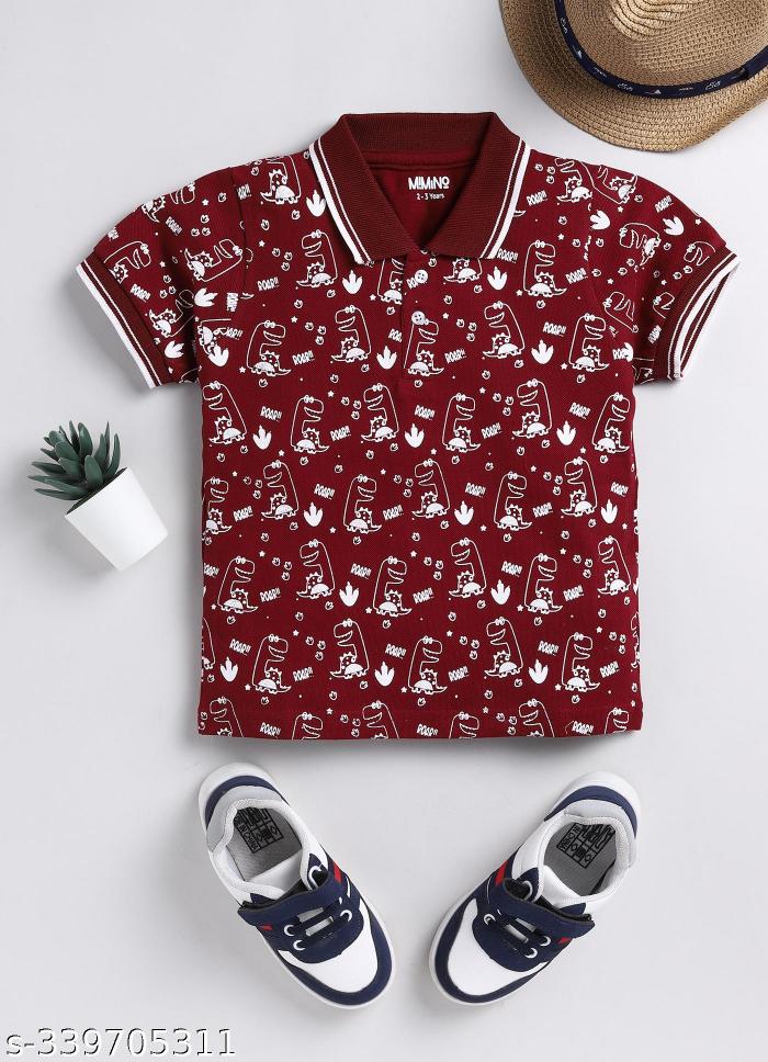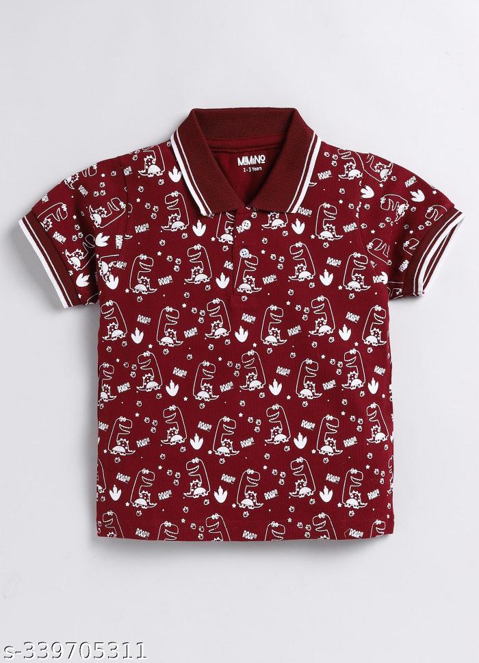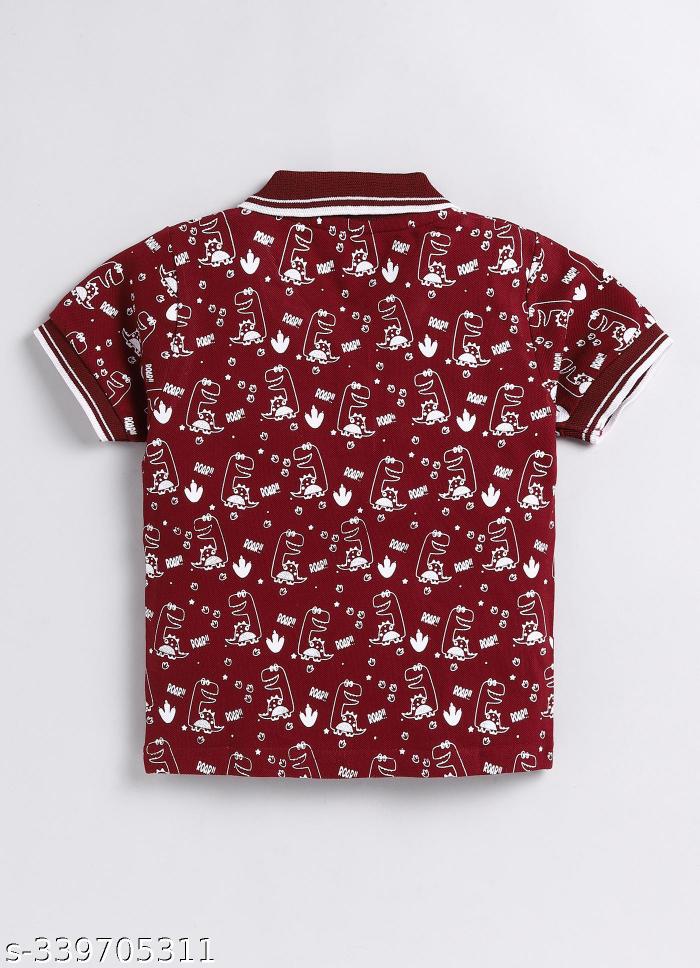 Baby Boys Cotton Made Half Sleeve Dino Theme Maroon Polo T-Shirt