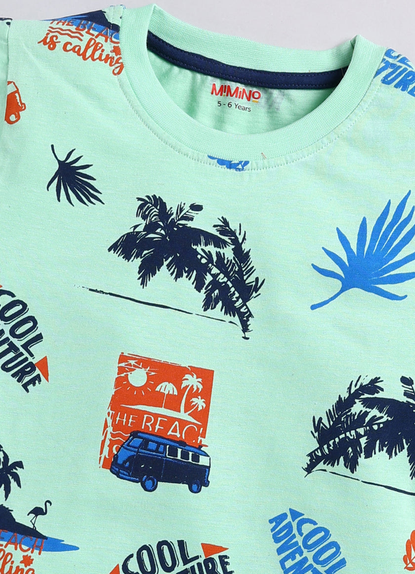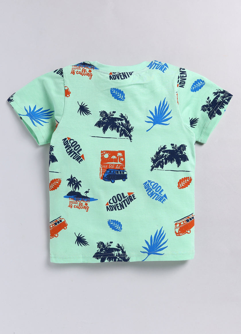 Boys Cotton Made Half Sleeve Holiday Theme Green Round Neck T-Shirt