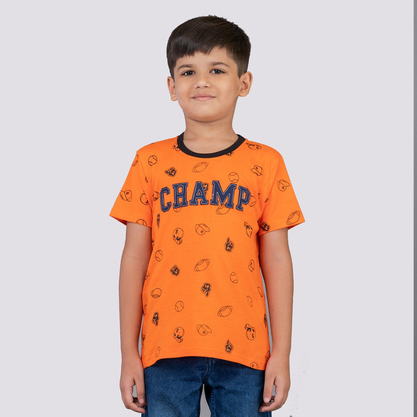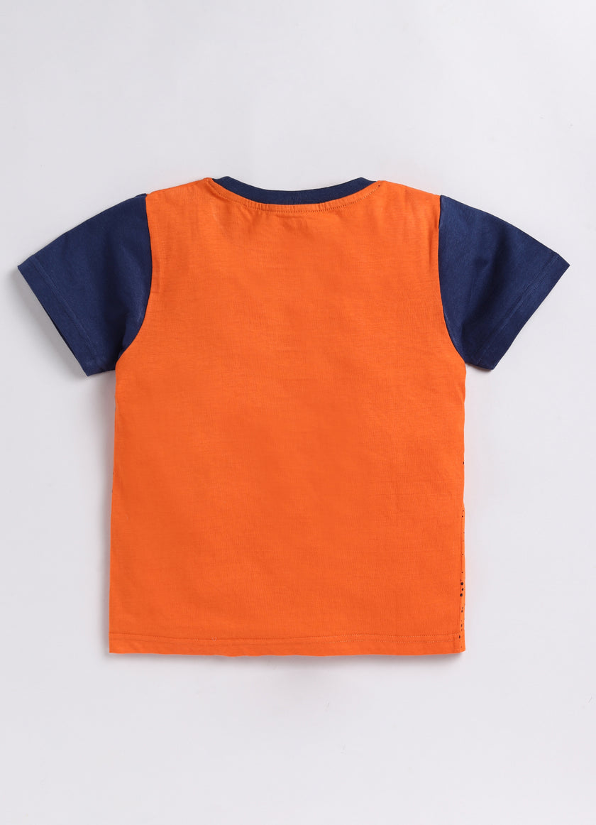Boys Cotton Made Half Sleeve Play Theme Orange Round Neck T-Shirt