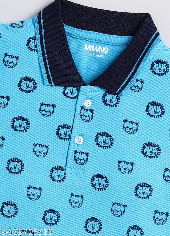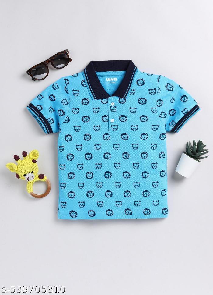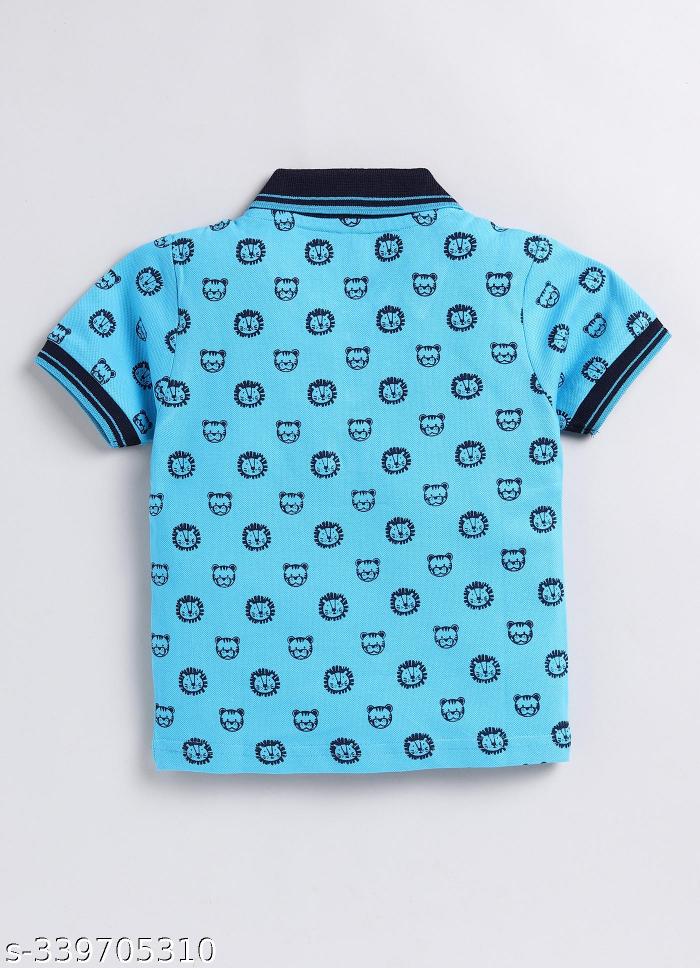 Baby Boys Cotton Made Half Sleeve Animal Printed Sky Blue Polo T-Shirt